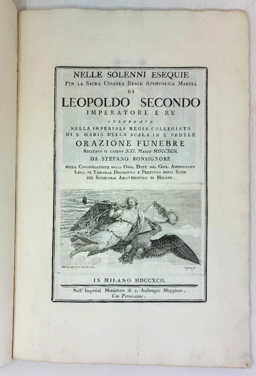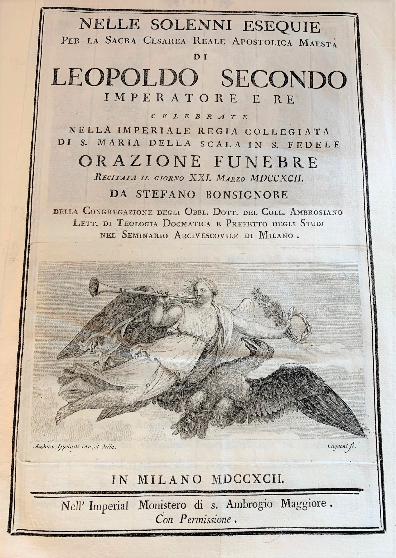 Nelle solenni esequie per la Sacra Cesarea Reale Apostolica Maestà di Leopoldo Secondo Imperatore e Re. Celebrate nella imperiale Regia collegiata di S. Maria della Scala in S. Fedele. Orazione funebre. Recitata il giorno XXI. Marzo MDCCXCII.