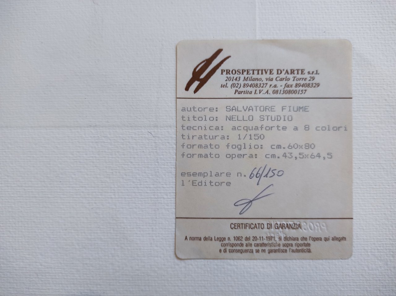 Tiratura 66/150. acquaforte 8 colori inciso cm. 64,5 x 43,5 Buono (Good) Buon es..