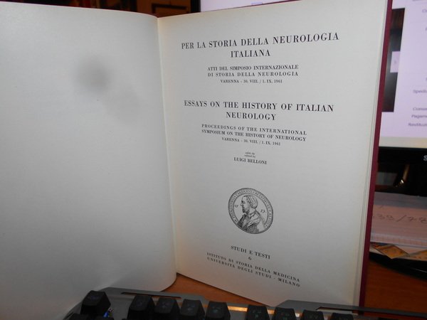 (Neurologia) Essays on the History of Italian Neurology. Proceedings of the International Symposium on the History of Neurology Varenna 30.VIII./1.IX.1961. Per la Storia della Neurologia Italiana.