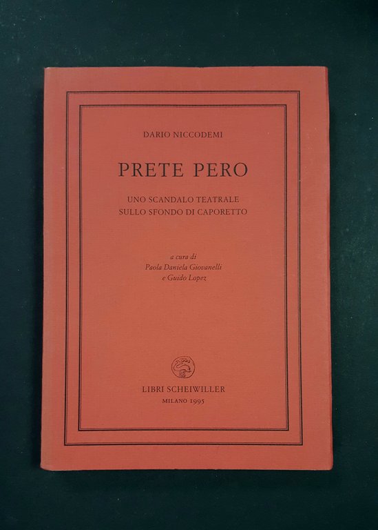 Niccodemi Dario. Prete Pero. Uno scandalo teatrale sullo sfondo di Caporetto. A cura di Paola Daniela Giovanelli e Guido Lopez. Libri Scheiwiller. 1995 - I. Brossura con alette. pp. 253