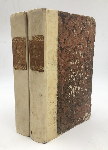 Opera completa in 2 volumi, complessive pagine 738 + 2 ANTIPORTE (veduta di Firenze e della piazza di Gavinana). Solida ma modesta mezza pergamena coeva, titolo e fregi oro su tasselli in pelle. Asportato senza perdite di stampato il bordo inferiore del primo occhiello. Il secondo romanzo del D'Azeglio, con bella dedica a stampa allo scrittore milanese Tommaso Grossi (Milan, 2 maggio 1841), ambientato durante l'assedio di Firenze a opera degli spagnoli di Carlo V nel 1530 (i "Piagnoni" sono i seguaci del Savonarola, i "Palleschi" dei Medici) che pose fine all'epoca d'oro fiorentina e alle libertà. "È il codice dell'eroismo italiano: qui abbondano i grandi fatti e i grandi motti" (De Sanctis) "ferrea natura tanto lontana dalla moderna fiacchezza", come dice l'Autore nella sua patriottica prefazione (di 5 pagine); iniziato nel 1833 correndo Firenze e "il contado. i monti di Pistoja"; "mi consolai il cuore e l'orecchio udendo poveri pastori e contadini parlarmi la lingua del Firenzuola. di Castruccio, di Francesco Ferrucci, che non avean certo conosciuti nelle storie o ne' libri". Edizione (che parrebbe la seconda), ignota a SBN.
