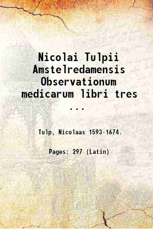 Nicolai Tulpii Amstelredamensis Observationum medicarum libri tres . 1641