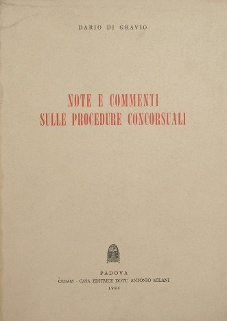 Note e commenti sulle procedure concorsuali | Rare and modern books | Di Gravio Dario