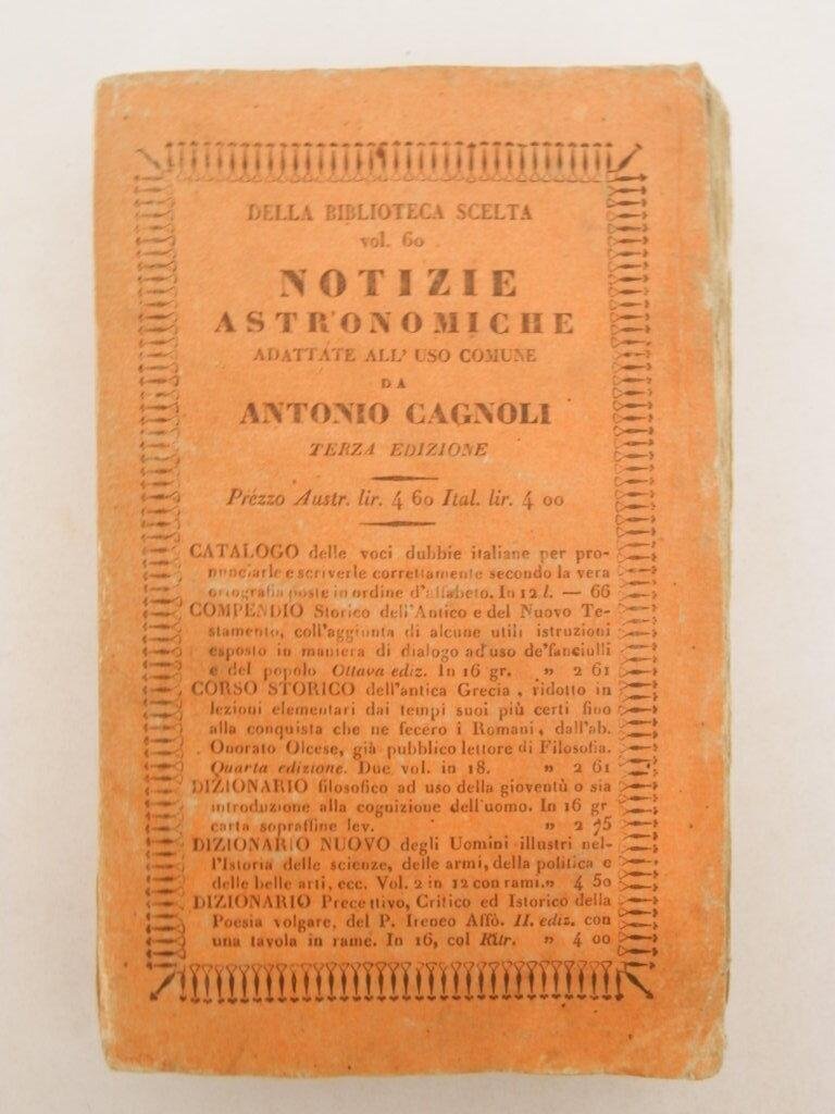 Notizie astronomiche adatte all'uso comune da Antonio Cagnoli premessavi la vita dell'autore compilata dal dottor Giovanni Labus con tre tavole in rame. Terza edizione della biblioteca scelta