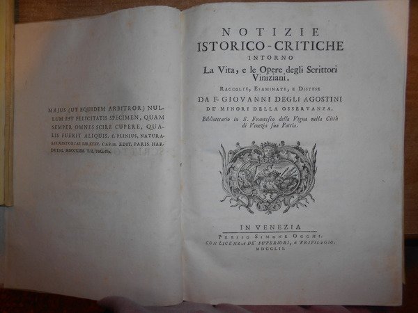 NOTIZIE ISTORICO-CRITICHE INTORNO LA VITA, E LE OPERE DEGLI SCRITTORI VINIZIANI