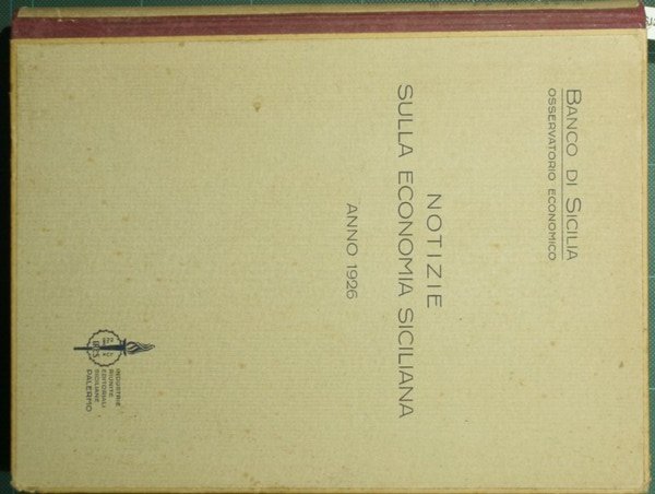 Notizie sulla economia siciliana. Anno 1926 | Rare and modern books | Banco Di Sicilia