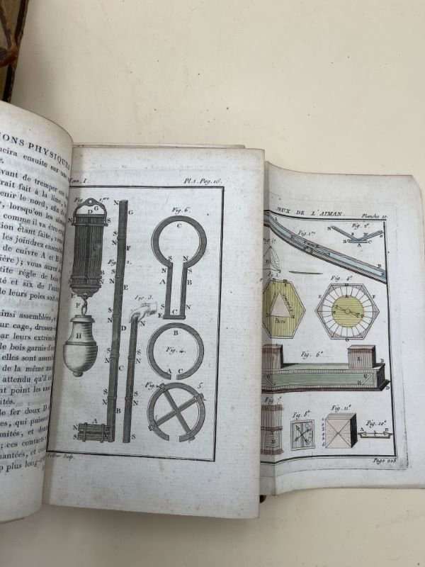 Librairie rue S André des Arcs 1799 A Paris, à la librairie rue S André des Arcs, 1799. 3 volumes in-8 reliés plein cuir de l'époque. Dos lisses ornés, pièces de titre et de tomaison. Faux titre, titre, XVI + 375 + VII + 410 + 408 pages. Manque en coiffe et en queue du tome 1, manque la pièce de titre du tome 3, coins émoussés et reliures épidermées. Néanmoins, complet des 102 planches en noir gravées par Sellier. Exemplaire contenant en sus les 74 planches couleurs de l'édition de 1769 (dont 6 en noir et une reproduite en manuscrit). Soit un total de 176 planches.