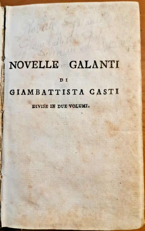 NOVELLE GALANTI DELL'ABATE GIAMBATTISTA CASTI tomo VI 1808 Nobile editore Libro