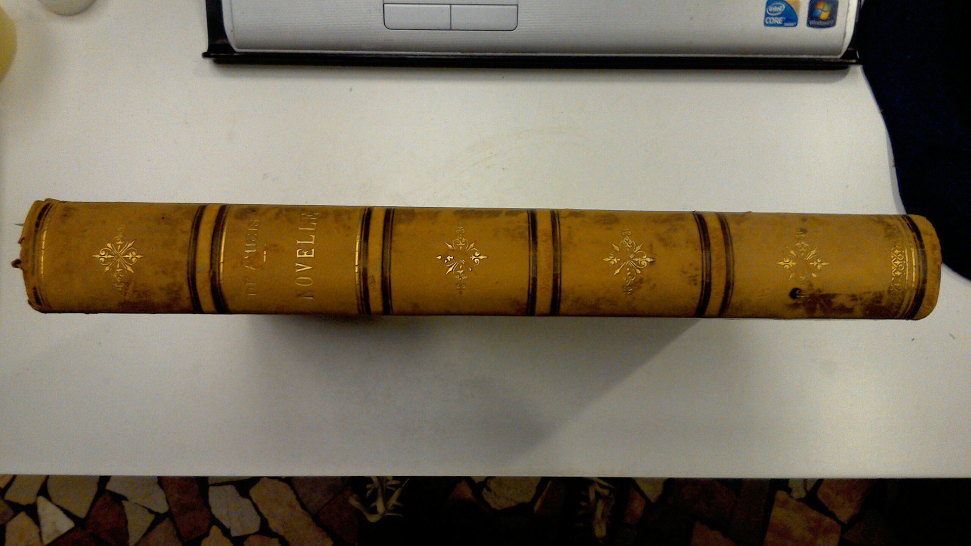- rilegatura in mezza pelle, fregi e titoli in oro sul dorso, nervi sul dorso, contiene 100 illustrazioni in nero