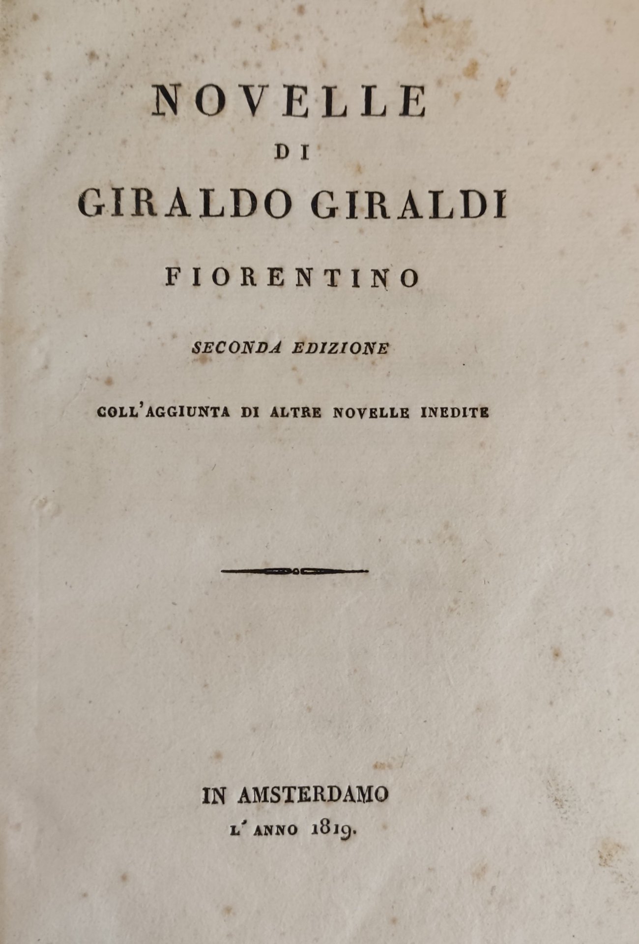 Seconda edizione. Con l'aggiunta di altre novelle inedite. in ottavo leg. cart. in mezza pelle pp. 230 Buono (Good) Discreto es., segni del tempo sparsi.