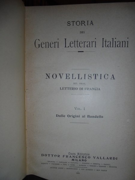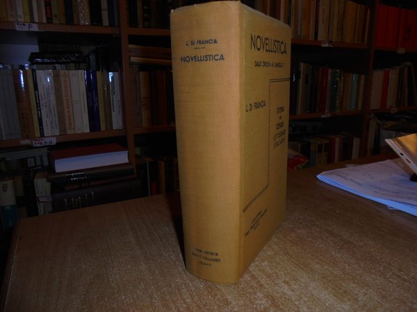 Letterio Di Francia. Milano, Casa Editrice Vallardi, 1924. NOVELLISTICA dalle origini al Bandello. Novellistica XVI - XVII secolo. Vol. I. II. 2 volumi in-8°, tela edit. orig. viii, 731, (1) pp.; viii, 452 pp. Ben conservati. Uff. A - II - 2