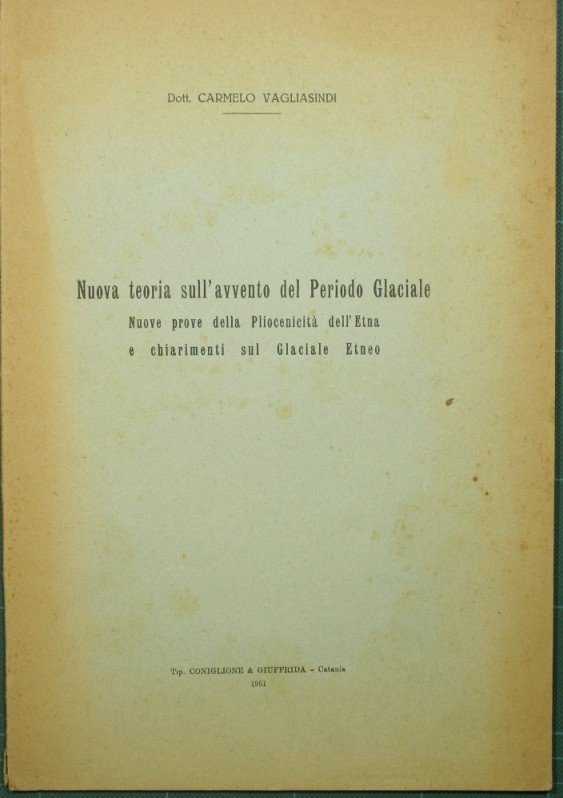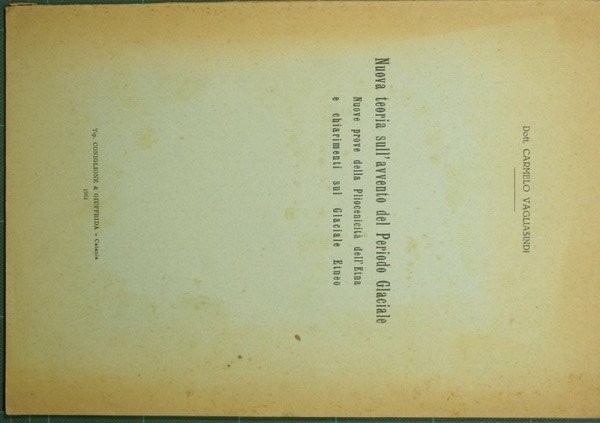 Nuova teoria sull'avvento del Periodo Glaciale | Rare and modern books | Vagliasindi Carmelo
