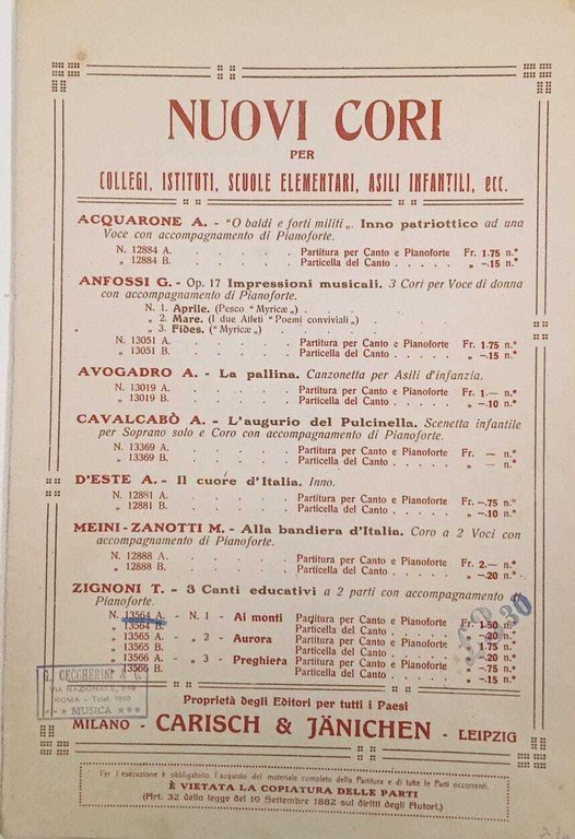 Nuovi Cori per collegi, istituti, scuole elementari, asili infantili, ecc.
