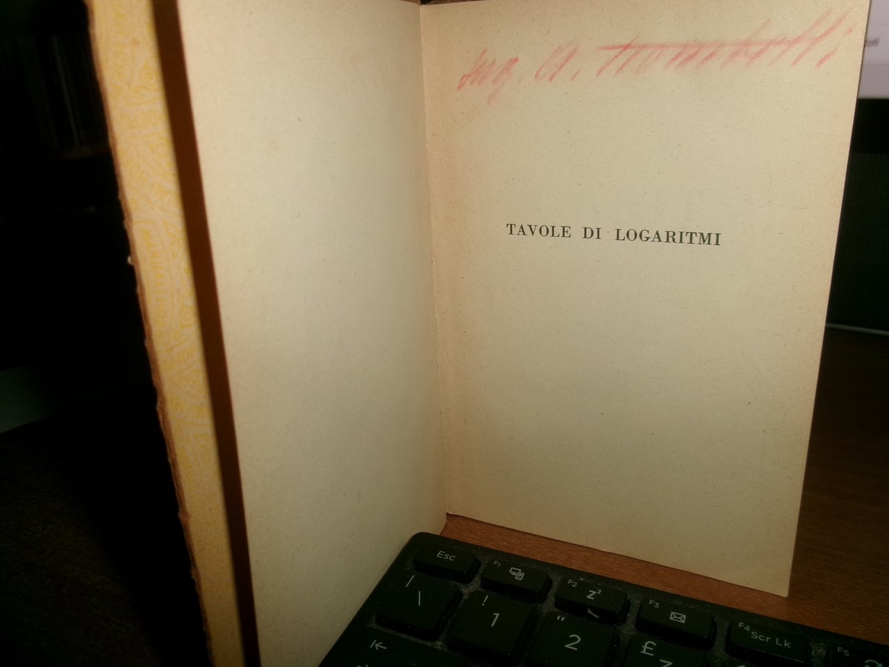 O. MULLER - M. RAJNA. Tavole di LOGARITMI con cinque decimali. 30a edizione riveduta per cura di L. Gabba. Milano, Ulrico Hoepli, 1942. In-16°, cart. edit. orig. xxxii, 203 pp. Ben conservato con firma a matita rossa all' occhietto e note a matita al verso del frontespizio. Neg, scat. ultimi Hoepli.