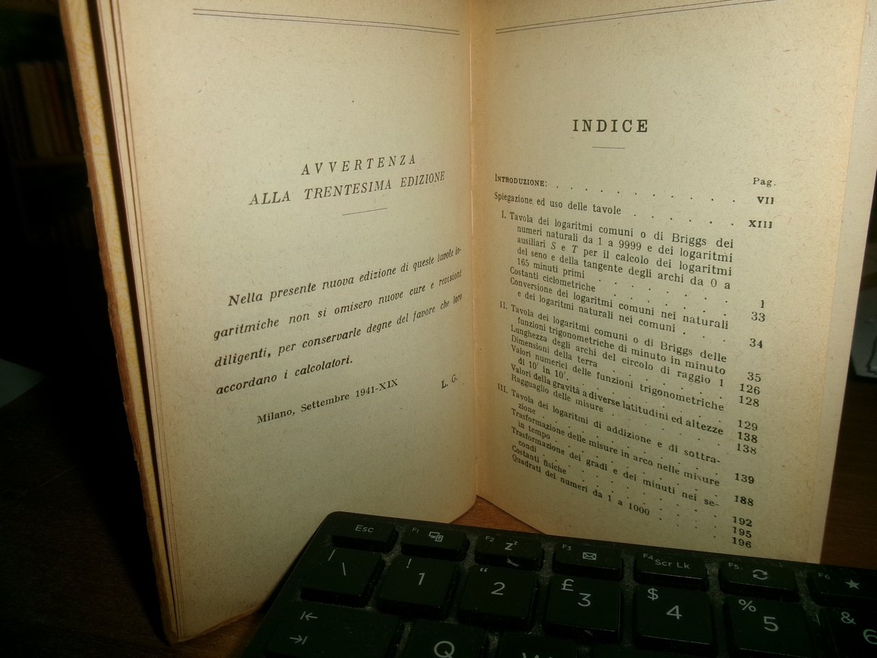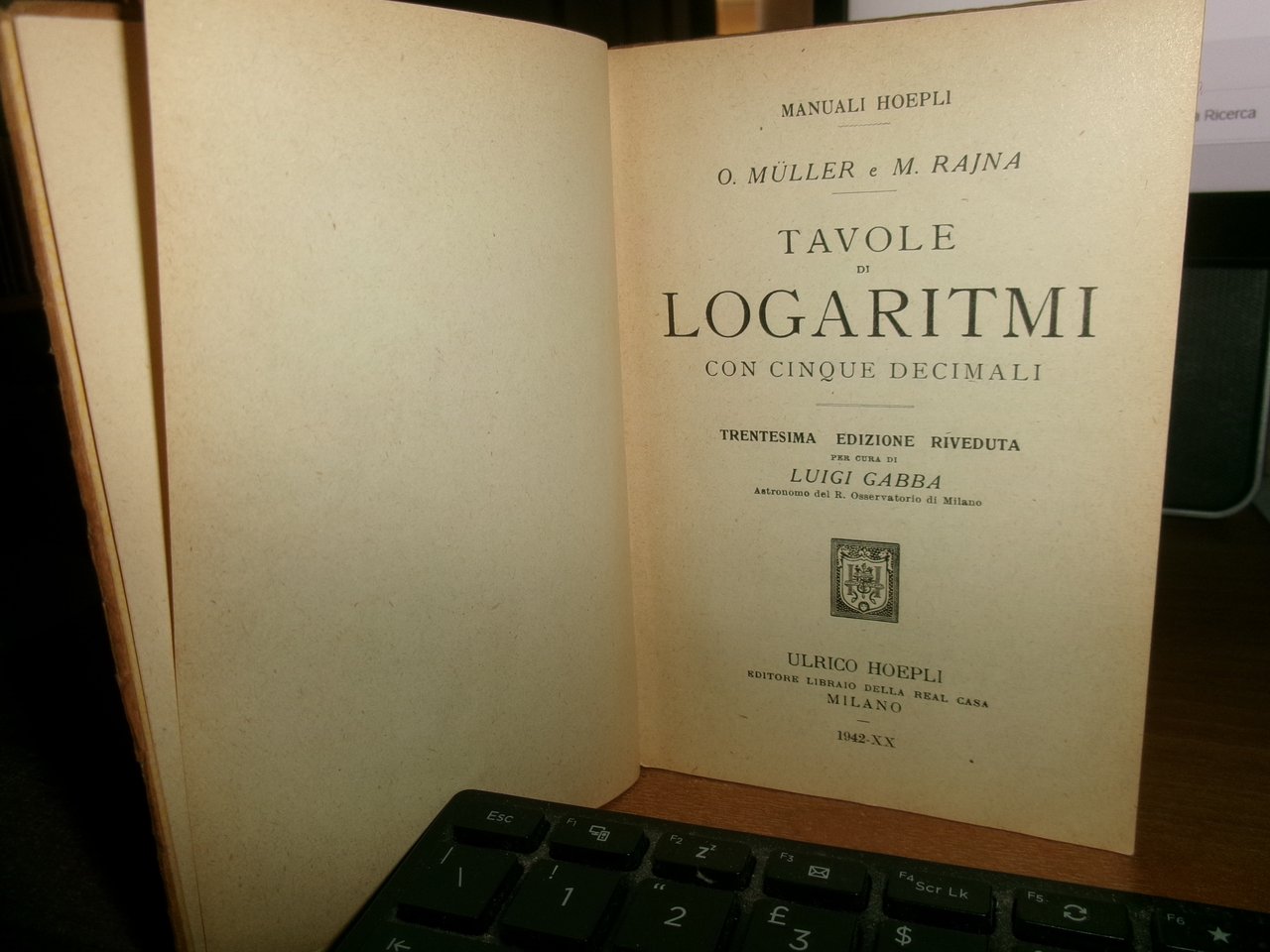 O. MULLER - M. RAJNA. Tavole di LOGARITMI con cinque decimali - Hoepli, 1942