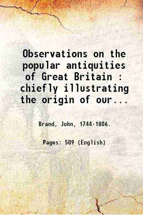 Observations on the popular antiquities of Great Britain : chiefly illustrating the origin of our vulgar and provincial customs, ceremonies, and superstitions / by John Brand. Volume 3 1849