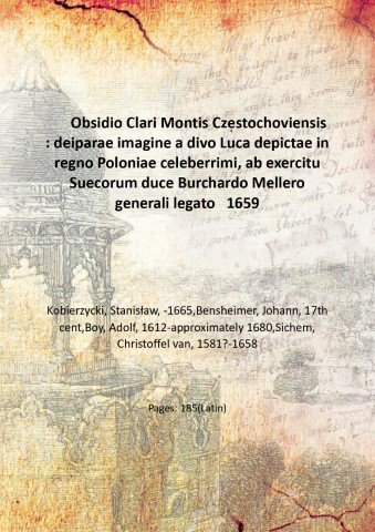 Obsidio Clari Montis Cze?stochoviensis : deiparae imagine a divo Luca depictae in regno Poloniae celeberrimi, ab exercitu Suecorum duce Burchardo Mellero generali legato 1659