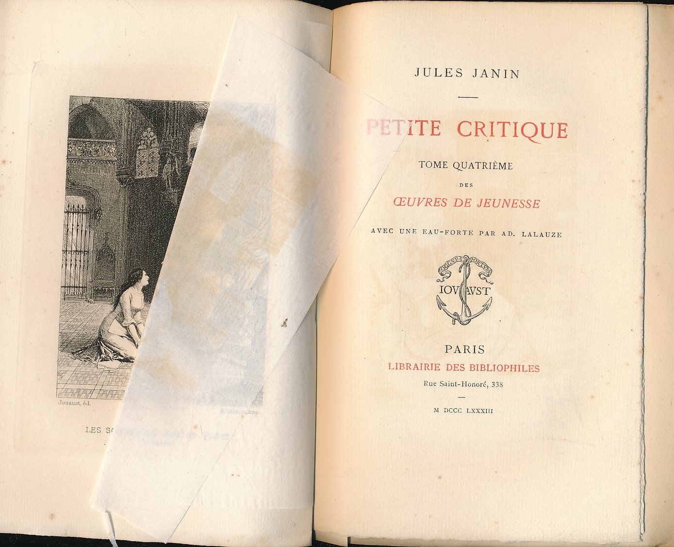 Librairie des bibliophiles 1883 Paris, Librairie des bibliophiles 1883. In-12 broché VIII + 300 pages. Frontispice par Lalauze. Non rogné. Tirage limité numéroté à 350 exemplaires, celui-ci sur hollande n° 175. Bon état
