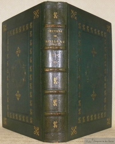 - Relié plein chagrin vert, dos à nerfs, dos et plats richement ornés de motifs dorés et à froids, tranche supérieure dorée, plats intérieurs avec encadrements de filets dorés, gardes papier marbré, cachet de possesseur, belle reliure. Exemplaire numéroté sur papier vergé 130/270.