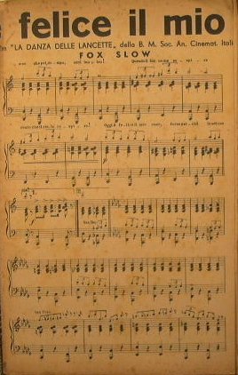 Autori Martelli L. L., Neri E., Mariotti Mario, Borella A. R. e Rost P. - Dal film ' La danza delle lancette ' della B. M. Soc. An. Cinemat. Italiana - Contiene i testi delle canzoni - in 8° - pp.51 - - Partitur per Pianoforte, Violini, Contrabbasso, Saxofono Contralto, Saxofono Tenore, Tromba, Trombone, Chitarra e Batteria