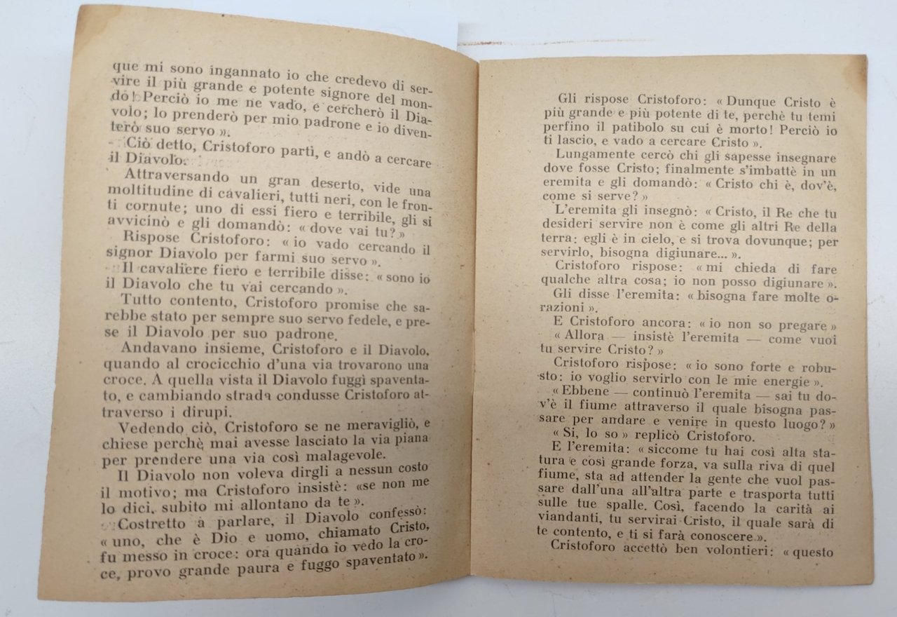 Legatura morbida editoriale con aloni e fioriture diffuse ai piatti, tagli leggermente bruniti, una macchia all'angolo superiore in tutte le pagine, all'interno quattro fogli del regolamento interno dell'opera di culto di San Cristoforo, dimensioni centimetri 14,6 * 10,8, pagine non numerate