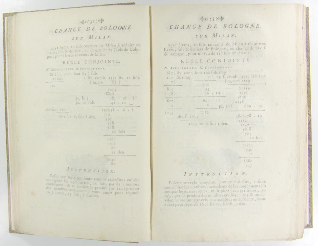 Opérations des changes des principales places de l'Europe - Contenant les noms et la division de leurs différentes monnoies de change considérées entr' elles, & relativement les unes aux autres ; la manière dont chacune y tient les écritures, la manière dont chacune y compte usances des lettres de changes, suivant les diverses places d'ou elles sont tirées ; les jours de grace qui y sont accordés, le cours des changes desdites places . Seconde édition corrigée et augmentée des Changes des diverses places. et suivies de l'évaluation de toutes les monnoies étrangères courantes et anciennes, d'après plusieurs essais . | Rare and modern books | Joseph René Ruelle