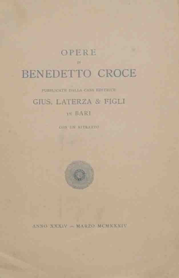 Opere di Benedetto Croce pubblicate dalla casa editrice Gius. Laterza & Figli in Bari. Con un ritratto