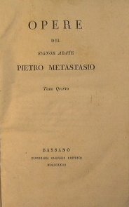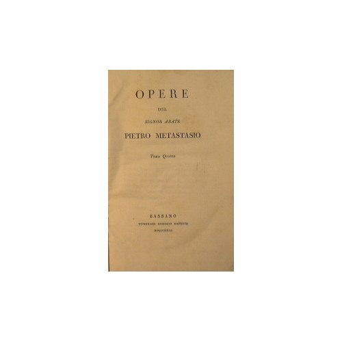 in 16° - pp.512 + 268 - Cartonata - con 2 inc.ad inizio tomo - Scotch al dorso, timbri - Opere contenute: Achille in Sciro; Ciro riconosciuto; Temistocle; Il Palladio conservato; Il Parnaso accusto e difeso; Atrea placata; Sonetti; Canzonette;Zenobia; Ipermestra; Antigono; Gioas re di Giuda; Betulia liberata; Sant'Elena al Calvario