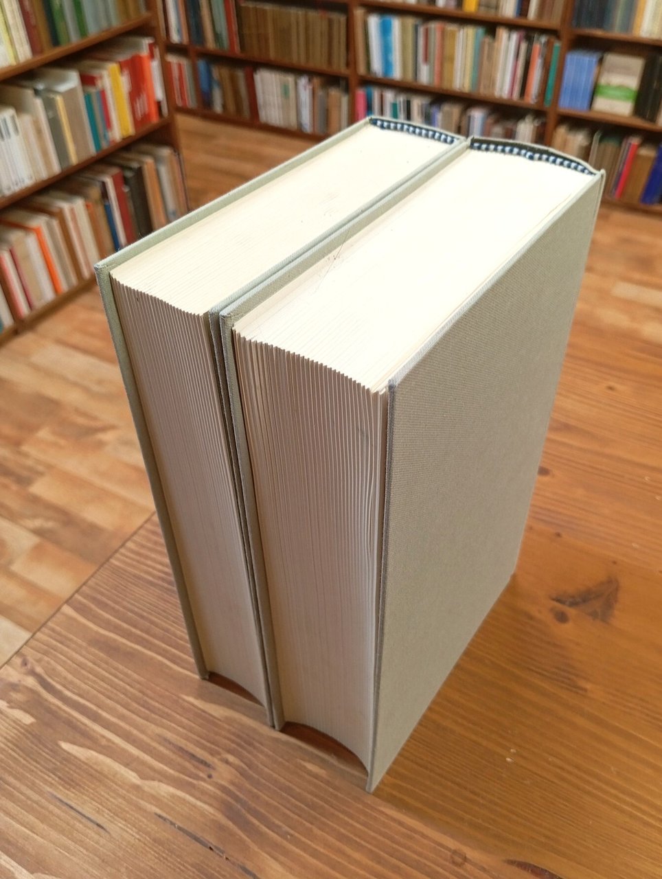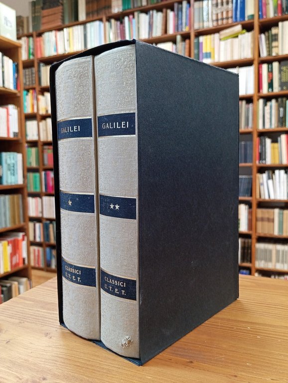 Ristampa 1996. "Classici della scienza", collezione fondata da Ludovico Geymonat - Opera di due volumi rilegati in tela editoriale grigio chiaro con titolo e decorazioni in oro al dorso, custodia in cartoncino muto nero, 986 + 851 pagine. Testi a cura di Franz Brunetti. Il secondo volume presenta un'assai tenue scoloritura al piatto anteriore e uno sbalzo al piede del dorso; note di possesso alle sguardie anteriori; per il resto l'opera è in condizioni eccellenti, probabilmente mai letta.
