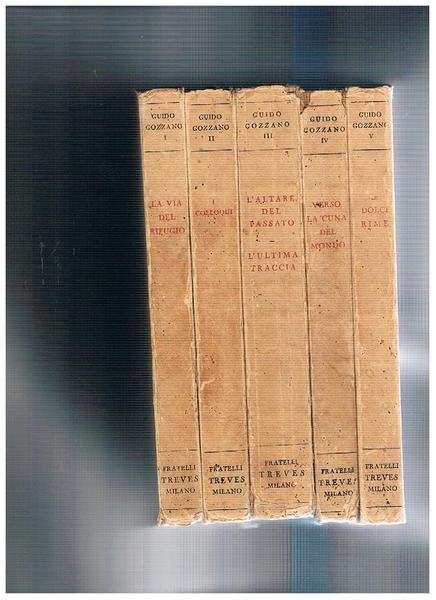 Opere vol. I-V: la via del rifugio con un'aggiunta di poesie varie; i colloqui e altre poesie; l'altare del pasasto l'utima traccia; verso la cuna del mondo lettere dall'India; le dolci rome: le fiabe, san Francesco. Edizione definitiva.