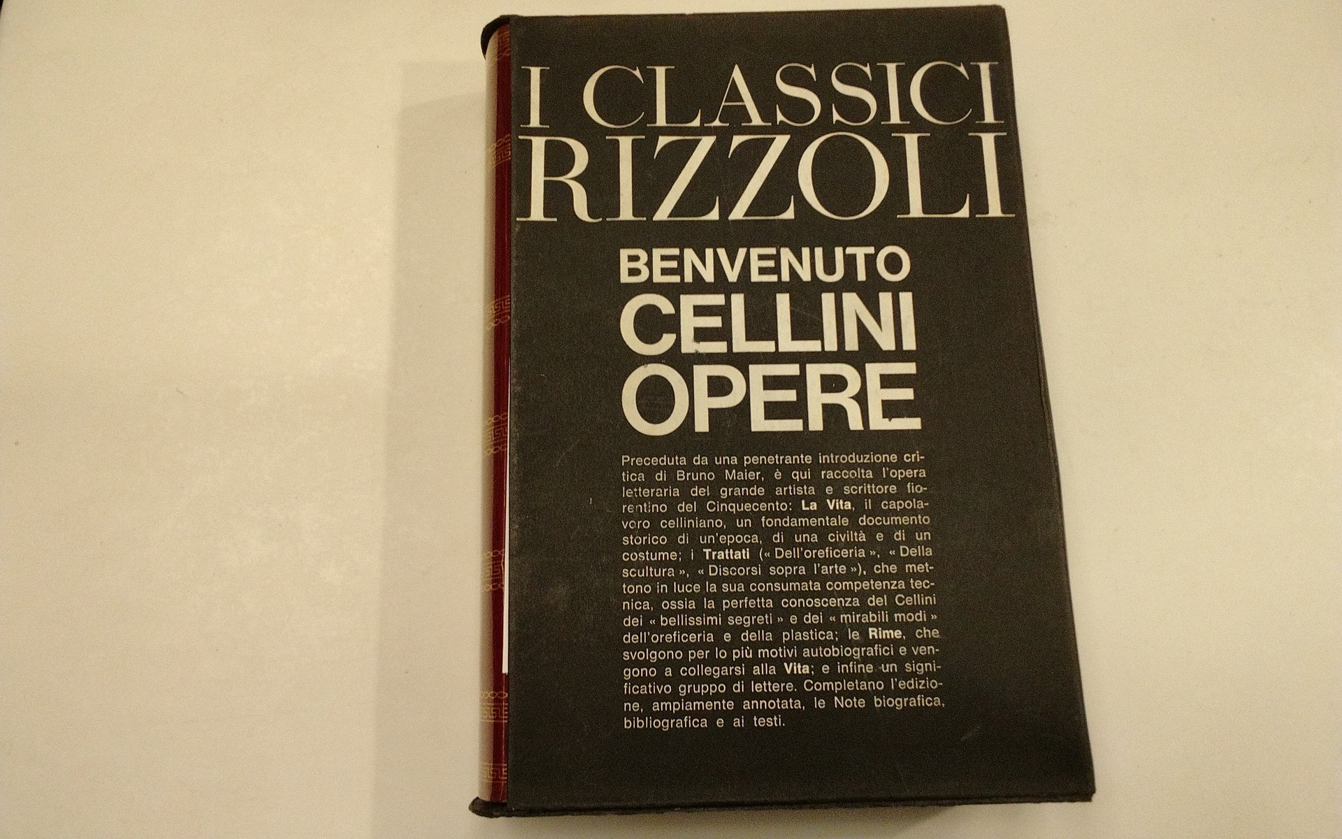 Raccolta di opere di Benvenuto Cellini. Contiene: Vita; Trattati; Rime; Lettere.