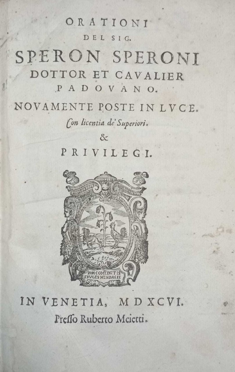 ORATIONI DEL SIG. SPERONE SPERONI DOTTOR ET CAVALIER PADOVANO
