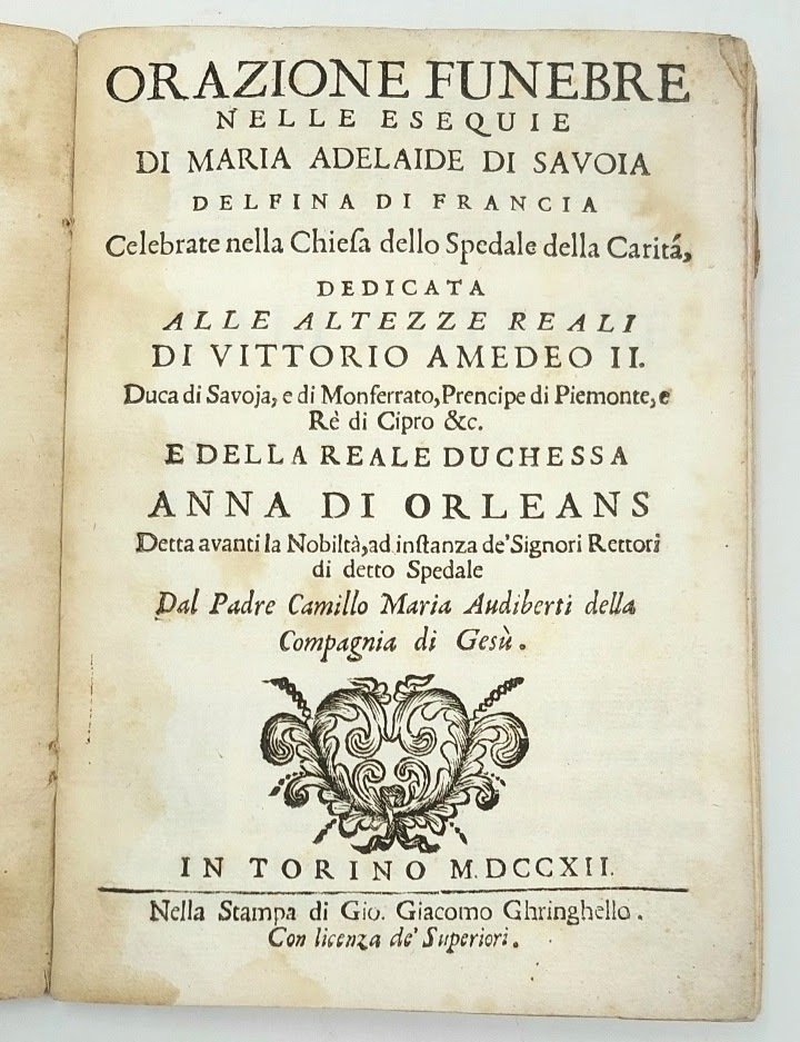 Orazione funebre nelle esequie di Maria Adelaide di Savoia Delfina di Francia... dedicata alle A.R. di Vittorio Amedeo II... e Anna di Orléans...