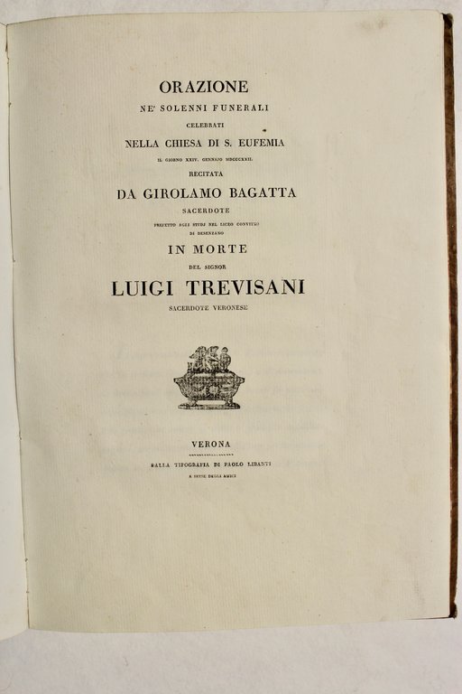 Orazione ne' solenni funerali celebrati nella chiesta di S.Eufemia il giorno XXIV gennaio MDCCCXXII recitata da Girolamo Baratta…in morte del signor Luigi Trevisan sacerdote veronese.<BR>, .