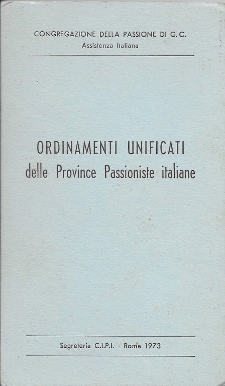 ORDINAMENTI UNIFICATI DELLE PROVINCE PASSIONISTE ITALIANE