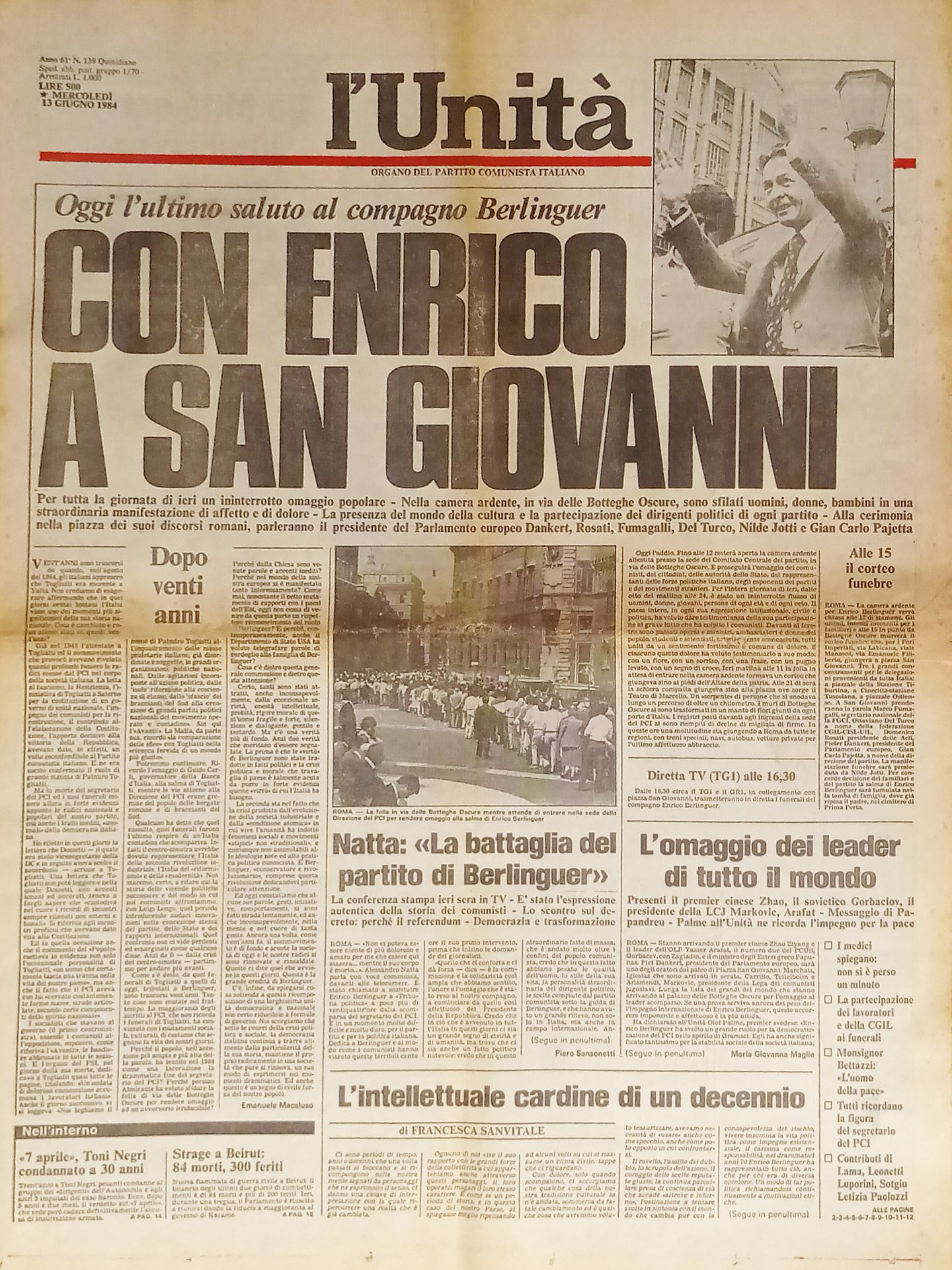 Organo Partito Comunista - L'Unità n. 139 - 1984 Con Enrico a San Giovanni Testo in lingua italiana. Pagine 20 con illustrazioni. Condizioni buone con segni del tempo come da foto.
