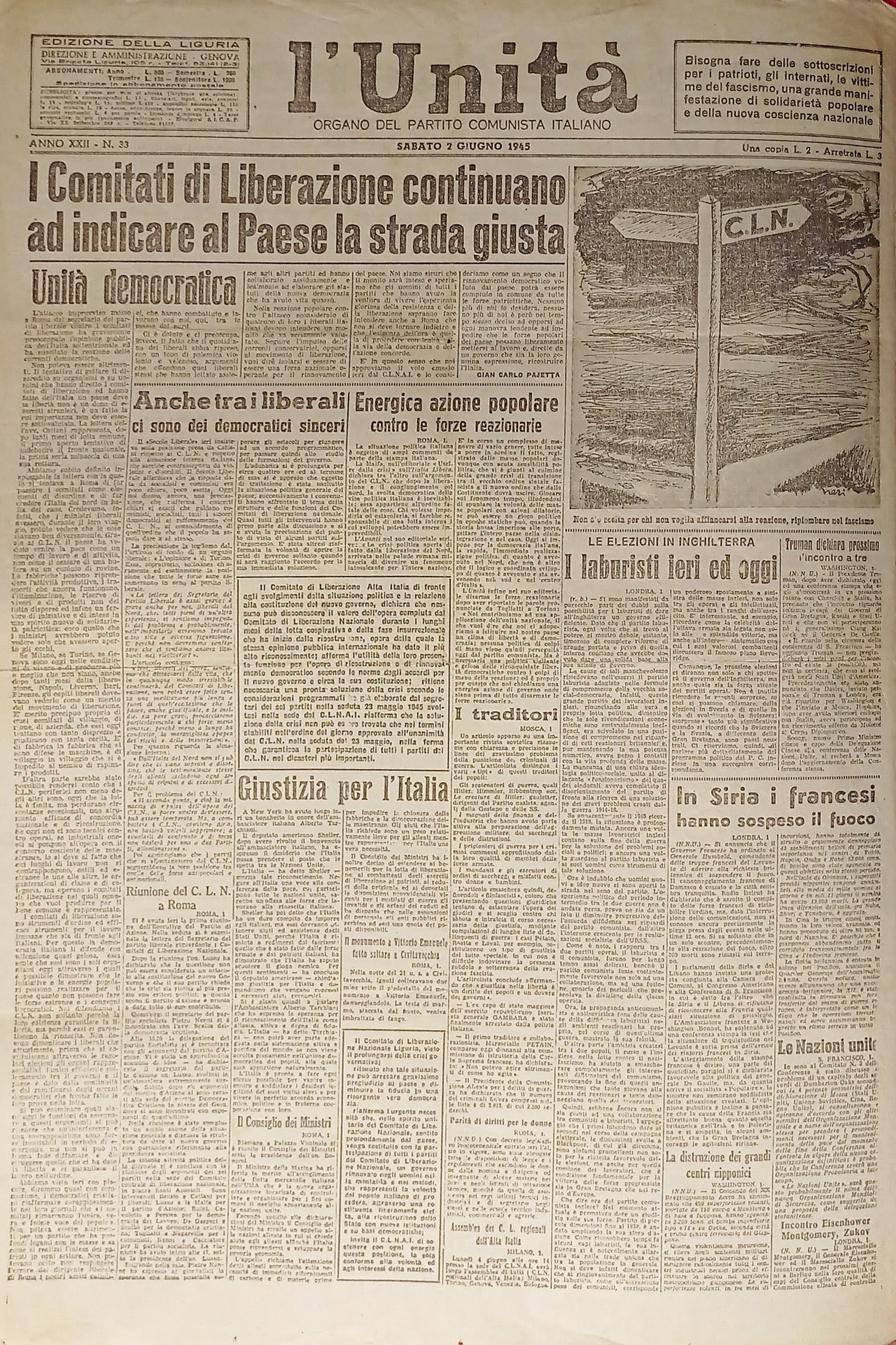 Organo Partito Comunista Italiano - L'Unità n. 33 - 1945 Strada giusta per paese