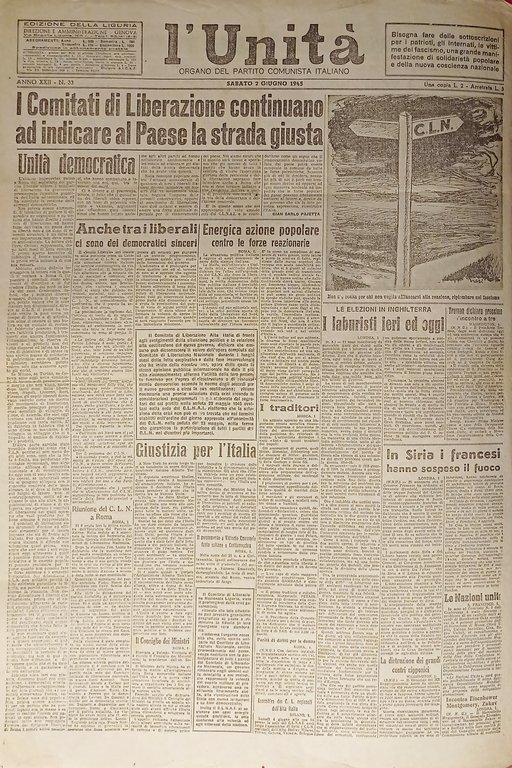 Organo Partito Comunista Italiano - L'Unità n. 33 - 1945 Strada giusta per il paese Testo in lingua italiana. Pagine 2 Condizioni discrete/buone come da foto. Â