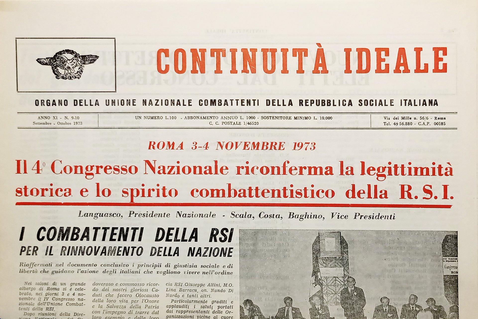 Organo Unione Nazionale Combattenti RSI - Continuità Ideale N. 9/10 - 1973 Testo in lingua italiana. Pagine 8 con illustrazioni  Condizioni molto buone