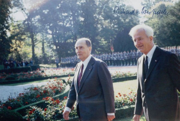 Originalphotographie mit eigenh. U. ("F. Mitterand") sowie der vom deutschen Bundespräsidenten Richard von Weizsäcker.