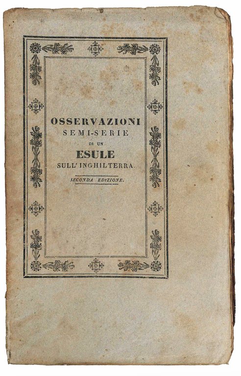 Osservazioni semiserie di un esule sull'Inghilterra. Seconda edizione | Rare and modern books | PECCHIO, Giuseppe (1785-1835)