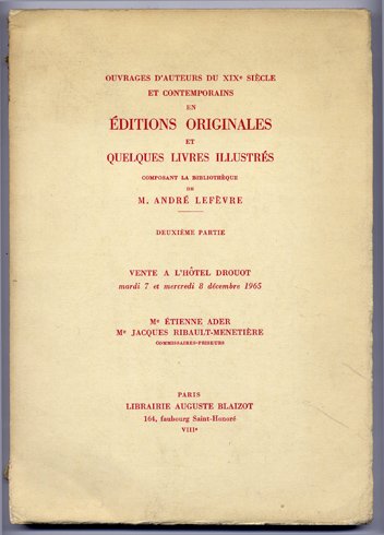 Ouvrages d'auteurs du XIX siècle et contemporains en éditions originales et quelques livres illustrés composant la Bibliothèque de André Lefèvre. Deuxième partie. F à M.
