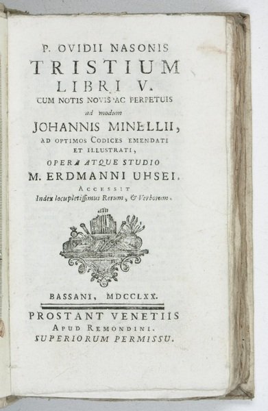 P. Ovidii Nasonis Tristium libri V. Cum notis novis ac perpetuis ad modum Johannis Minellii, ad optimos codices emendati & illustrati, opera atque studio M. Erdmanni Uhsei.