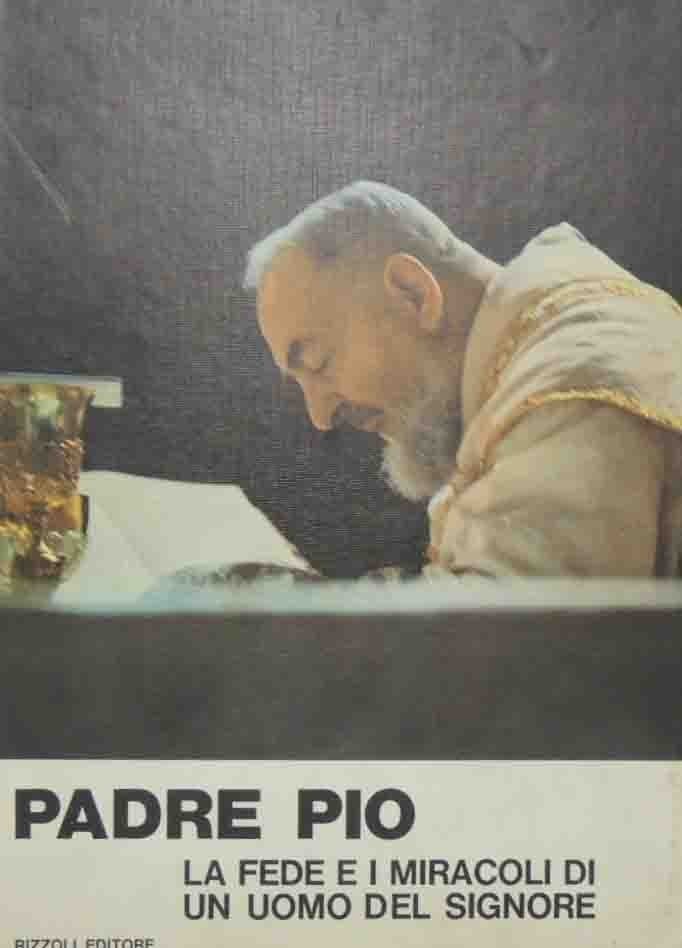 Padre Pio. La fede e i miracoli di un uomo del Signore, Rizzoli Editore, Milano 1968, pp. 127, in gran parte ill. b.n., cm 32, cart. ed. con titoli e illustrazioni al dorso e al piatto. Volume redatto da Enzo Biagi, Silvio Bertoldi, Guido Gerosa, Sandro Mayer, Mario Pancera. Supplemento ad Annabella, n. 41, 10 ottobre 1968. Lievissime tracce d’uso, lagatura un po’ sporca, per il resto molto ben conservato.