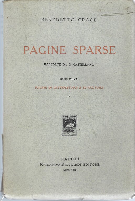 Pagine sparse. Raccolte da G. Castellano. Serie prima. Pagine di letteratura e di cultura
