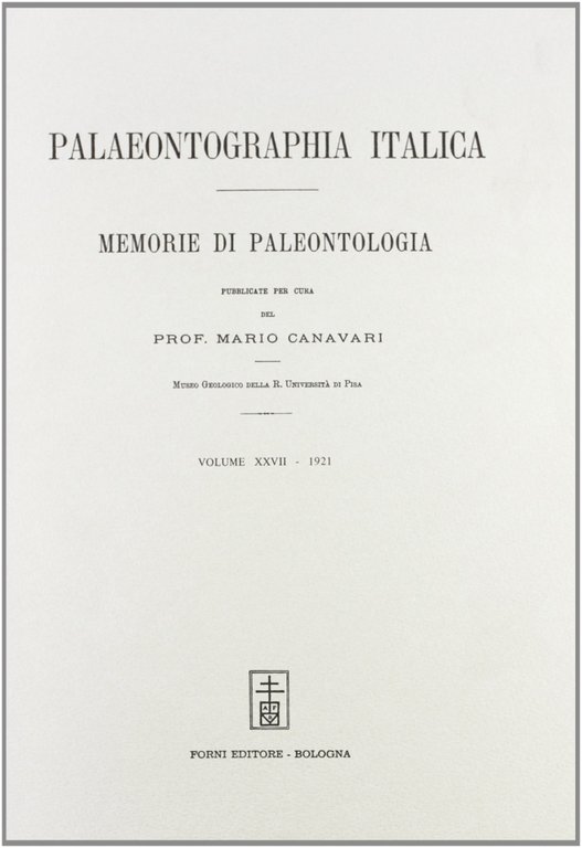 Palaeontographia italica. Raccolta di monografie paleontologiche. Vol. 27 | Rare and modern books |