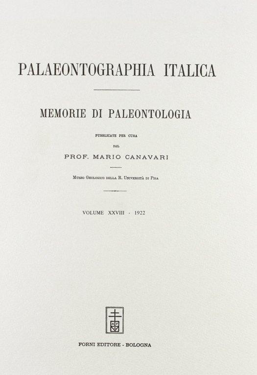 Palaeontographia italica. Raccolta di monografie paleontologiche. Vol. 28