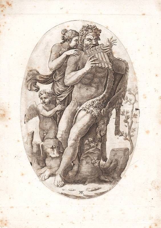 Pan che suona il flauto a canne, (Siringa).