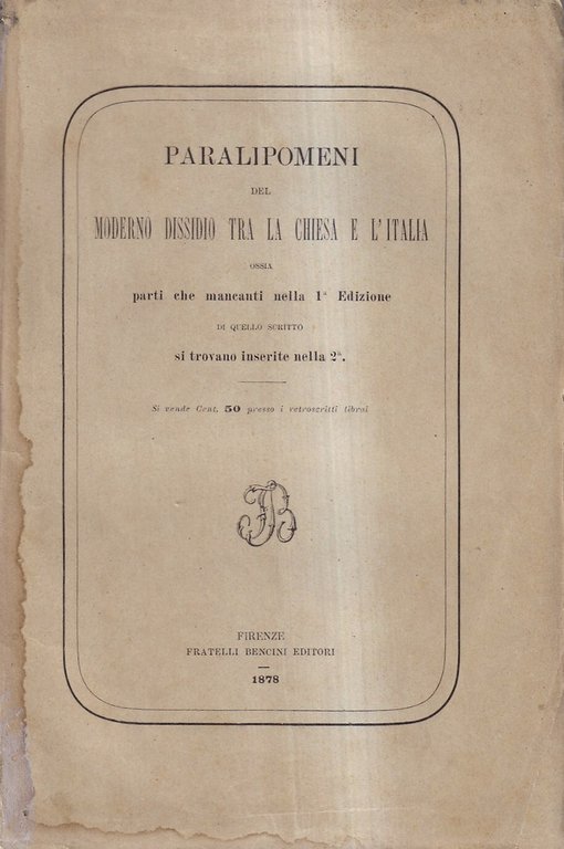 Paralipomeni del moderno dissidio tra la Chiesa e l'Italia, ossia parti che mancanti nella 1^ edizione di quello scritto si trovano inserite nella 2^
