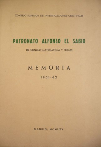 Patronato Alfonso el Sabio de Ciencias Matemáticas y Físicas. Memoria 1961-1962. | Rare and modern books | N, A.